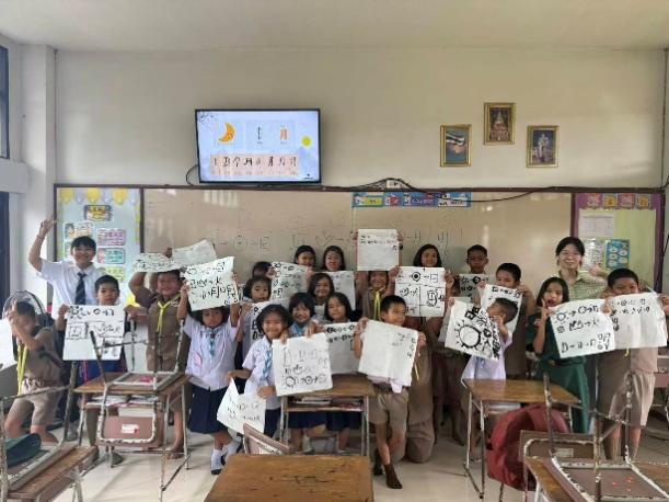Watsalaeng School团队针对幼儿认知特点,将中文儿歌与肢体动作结合,孩子们在《两只老虎》的旋律中自然跟读“眼睛”“耳朵”;在素攀武里府的Watdanchang School,高年级学生通过“汉字演变工作坊”体验甲骨文到楷书的转化,一名学生在作业本上写道:“汉字像画,但比画更神秘。”