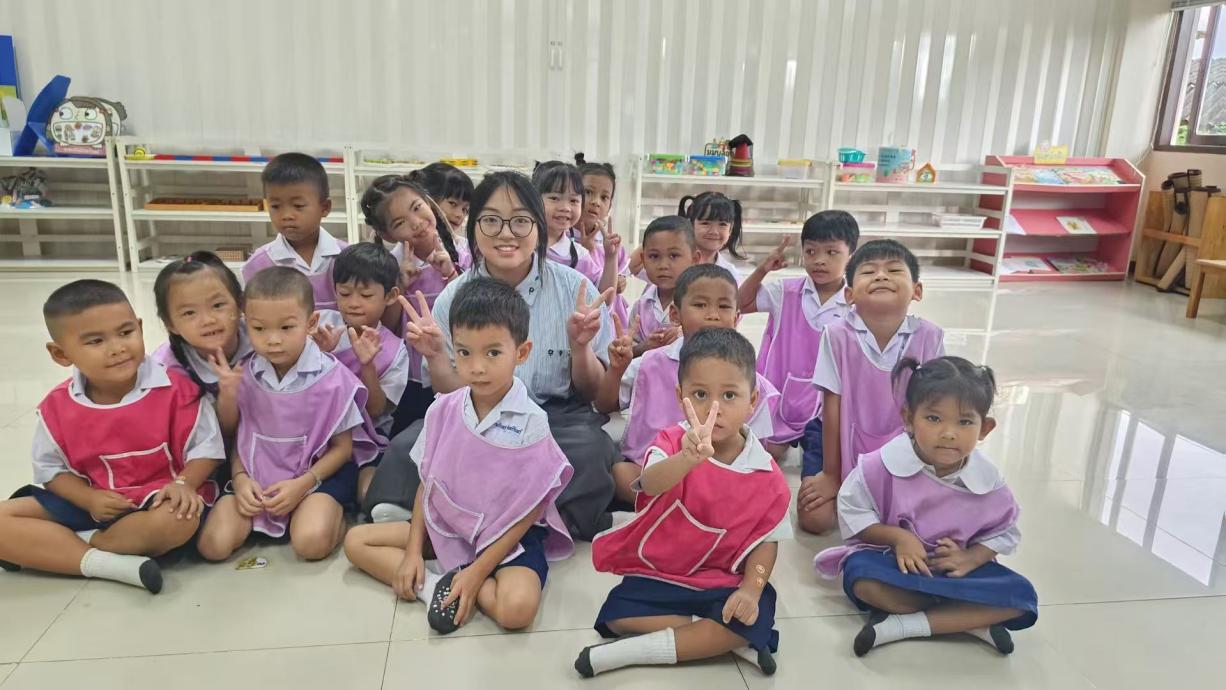 在Praditsuksa School的每一天,都像是被泰国的阳光和孩子们的笑声共同浸泡过的。这段时光于我而言,既是一场以汉语为媒的文化对话,也是一次深刻的双向成长。从“萨瓦迪卡”到“你好”的问候,从手把手书写汉字到共绘青花瓷、共打太极拳,我与孩子们以语言相遇,因文化相知。我不仅带领他们领略当代中国的发展与非遗技艺的精彩,也深入泰国的课堂与节庆,感受其教育理念与文化温度。这段旅程超越了讲台,成为心与心的相遇。孩子们用纯粹的热情和灿烂的笑容,让我深刻体会到教育无国界、文化可互通的真实力量。那些奔跑而来的身影、那些逐渐标准的发音、那些充满创意的手工作业,都是这段旅途中最动人的回响。中文的种子已在心底播下,而文化的桥梁,正悄悄连接起更远的未来。”