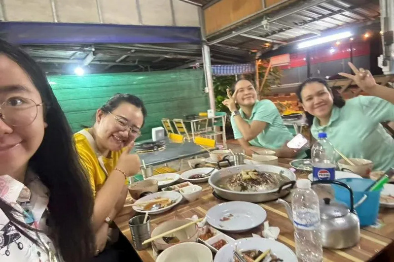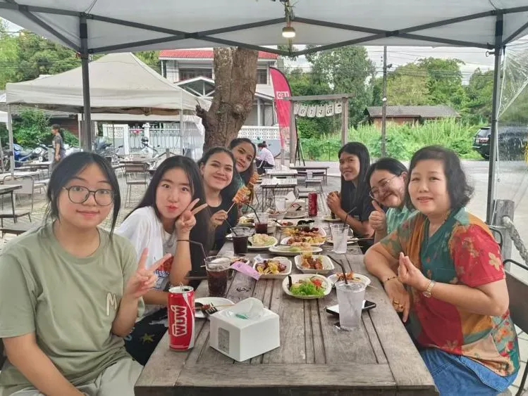 泰国老师们待我如家人。品尝泰式经典火锅Moogata时,大家围坐一堂,在蒸腾热气中分享美食与欢笑。Praew老师如同我的闺蜜,我们常常分享彼此的人生故事。她给我看她从小到大的照片,我讲述中国的风土人情,虽然来自不同国度,却总有说不完的知心话。