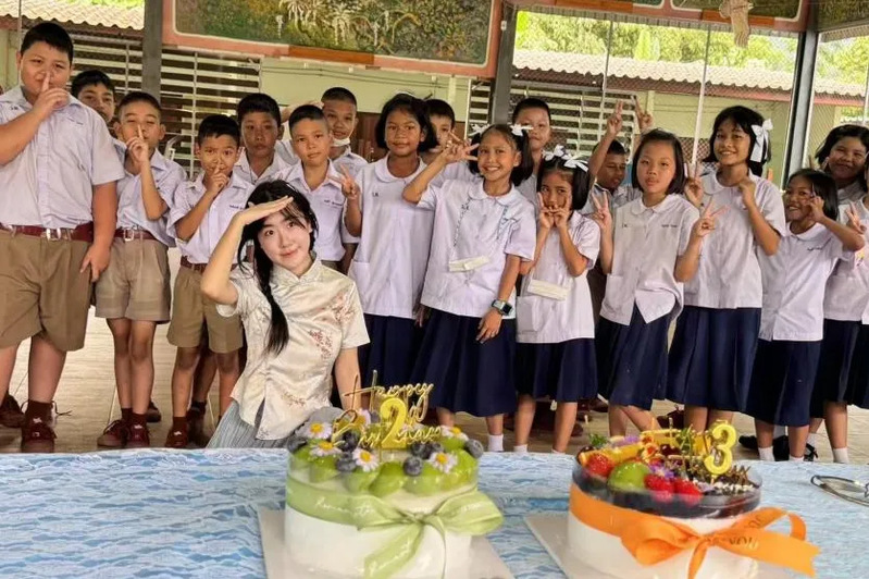 在食堂里,学生们忙完母亲节的准备活动后,他们用尚且生涩却无比真诚的中文齐声说:“生日快乐——” 歌声随后响起,泰语与中文交织成奇妙的复调。我切蛋糕的手微微发颤,奶油甜味之中,尝到了一种幸福的甜蜜。那一刻我忽然明白,原来节日的意义从不是礼物本身,而是让你突然看见自己如何被他人郑重地放在心上。