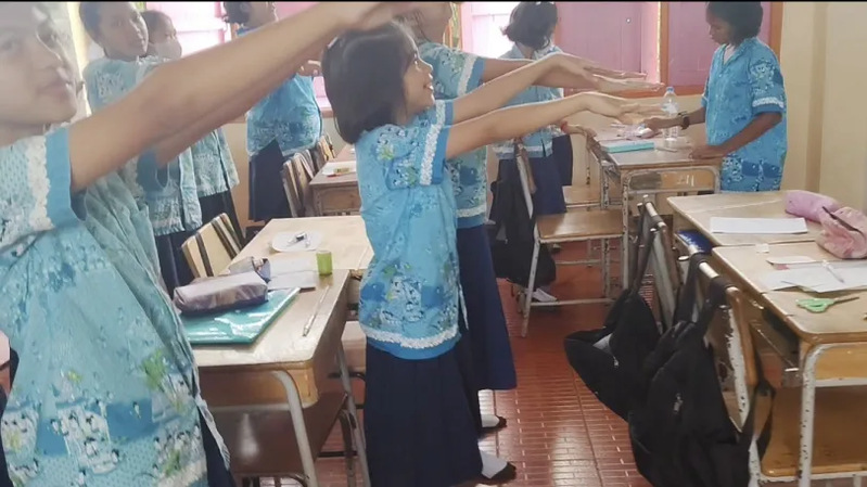 他们悄然离去时,班主任带着学生表示对到访者的感谢。我回头一想,这或许才是教育最真实的刹那:没有彩排,没有准备,只有日常本身所呈现的秩序与温度。后来经Praew老师一说才知道,那是一次突击检查。