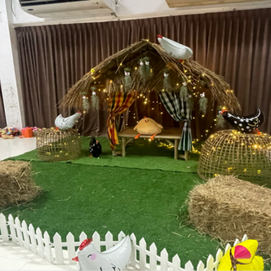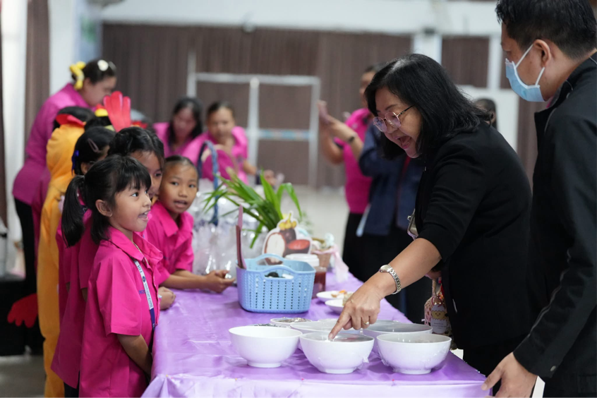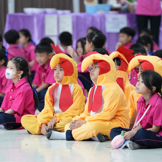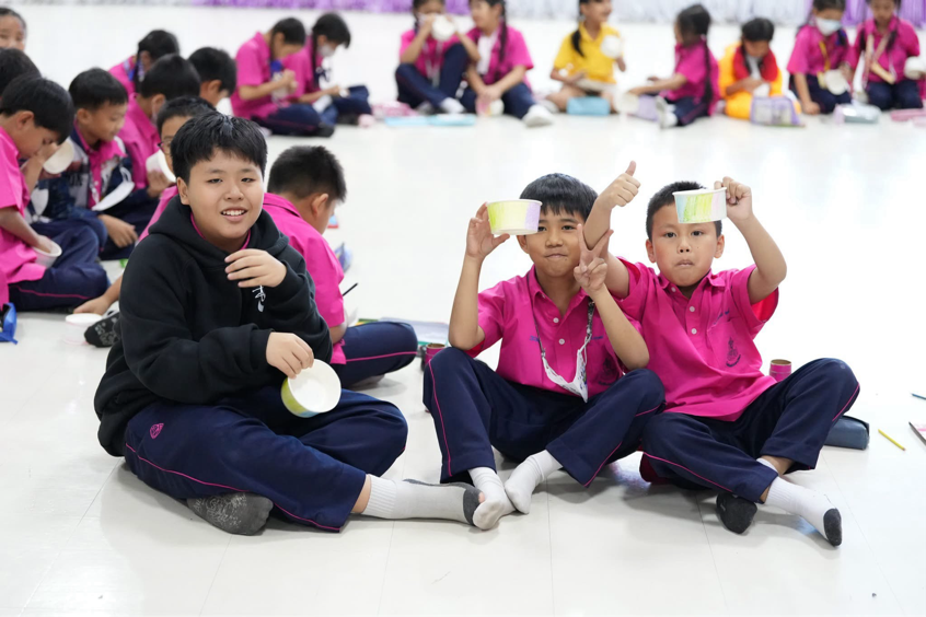 为丰富学生生活、培养动手与协作能力,同时传递跨文化理念,学校开展“快乐鸡”主题活动,融合传统咸蛋制作与文化体验环节,趣味与教育意义兼具。各班孩子全力筹备咸蛋制作,从挑蛋、调香料到浸泡,全程亲力亲为,沉浸式体验传统食品制作。用本地斑斓汁浸泡咸蛋,赋予其独特色泽与香气。老师一边指导制作细节,一边提及赴泰团队的交流经历:“中国老师在泰国分享春节、饮食文化,我们也能通过创新食材,让传统美食焕新。”