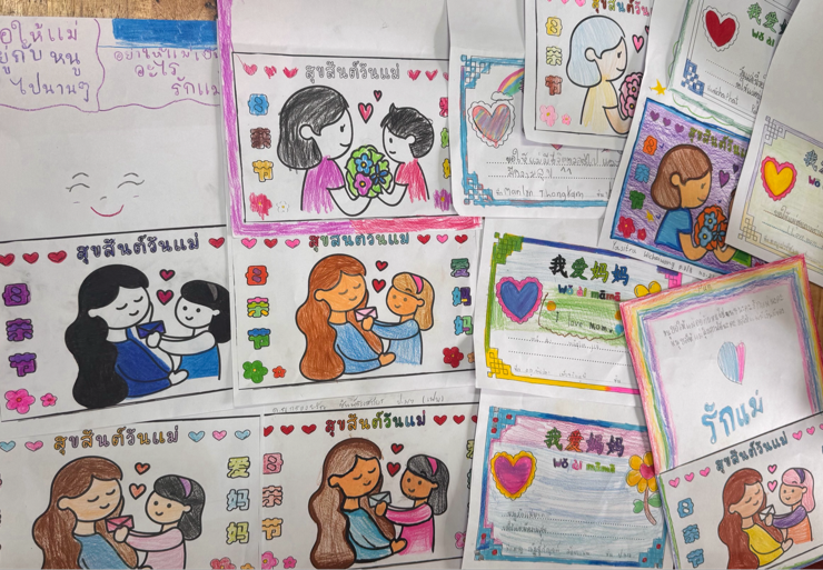 同时,教师们还结合泰国本土文化背景设计教学内容,将中国与泰国的节日进行联系。课堂上,当老师讲到春节时贴春联、吃饺子,学生们立刻联想到泰国节日中回家探望长辈的习俗,并热情地用中文说出“妈妈”“家人”。这种跨文化的联系让孩子们更容易理解汉语语境,也让他们在比较中发现两国文化的共性与差异。