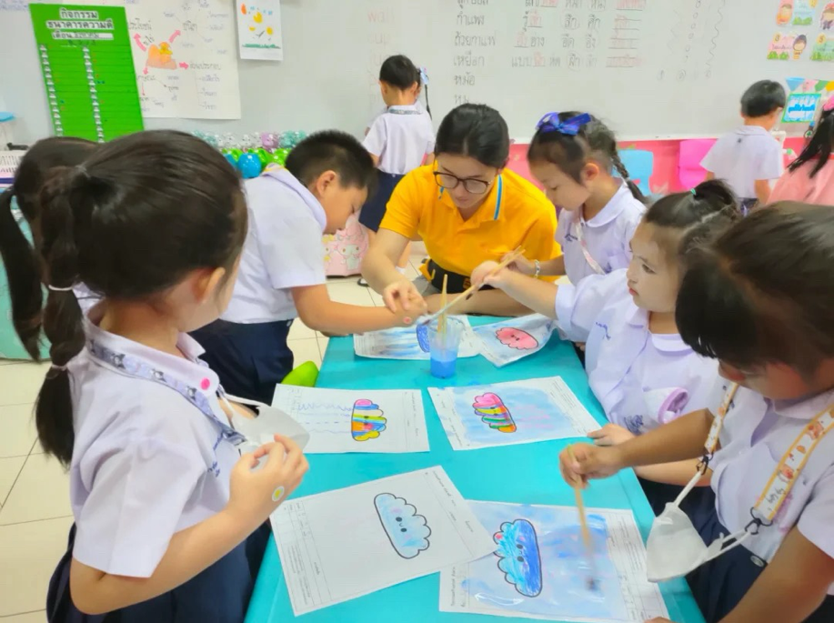 在互动的氛围中,汉语课堂不仅是语言学习的场所,更成为中泰文化交流的小窗口。孩子们在轻松愉快的氛围中开口说中文,而实习教师们也在学生真挚的回应中感受到教育的意义与价值。