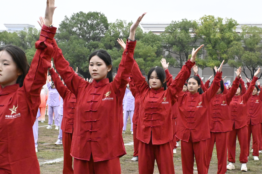 在八段锦比赛中,中文学子的举手投足之间自有一股沉静气韵,衣袂蹁跹而不凌乱。他们的表演既有传统功法的内敛沉稳,又不失运动会上的昂扬气象,将动静之美、刚柔之道演绎得淋漓尽致。