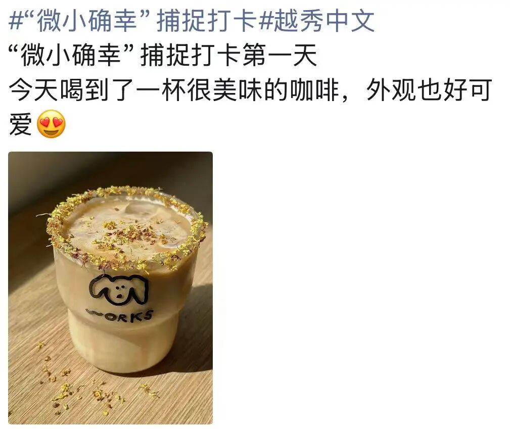 一、参与者每天寻找一个“小幸运”(如“地铁刚好有座”“咖啡拉花很可爱”),附带一张随手拍。