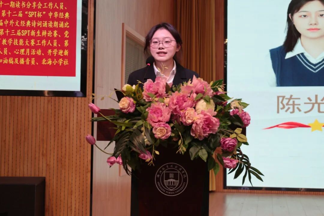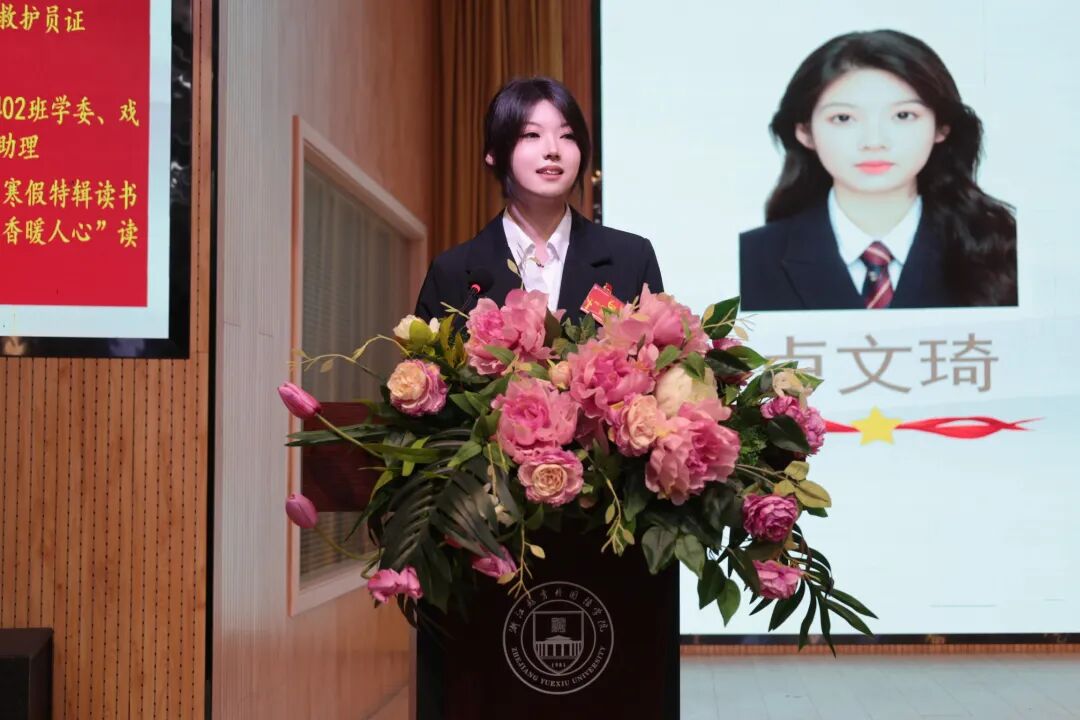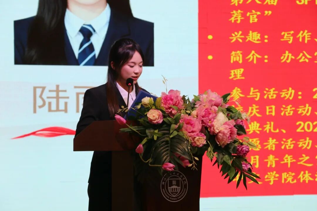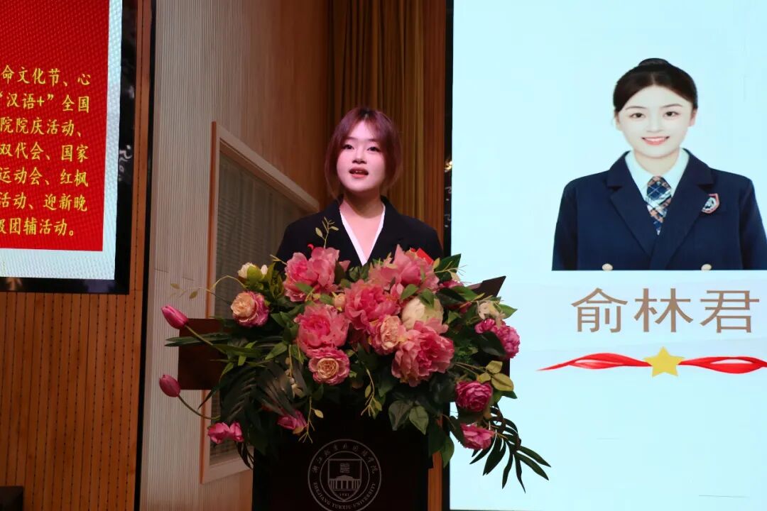 三届三次团委学生会文明创建部部长夏黄鑫、文体部部长李依岚依次上台分享了自身加入学生会、担任部长后的心得与感悟。