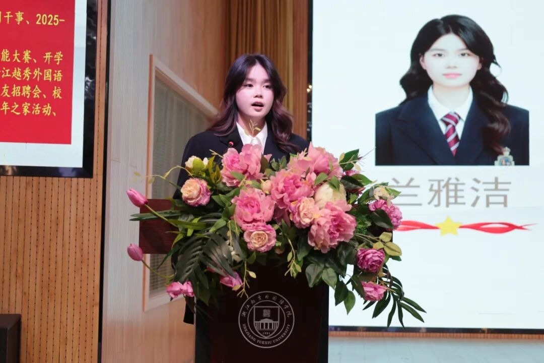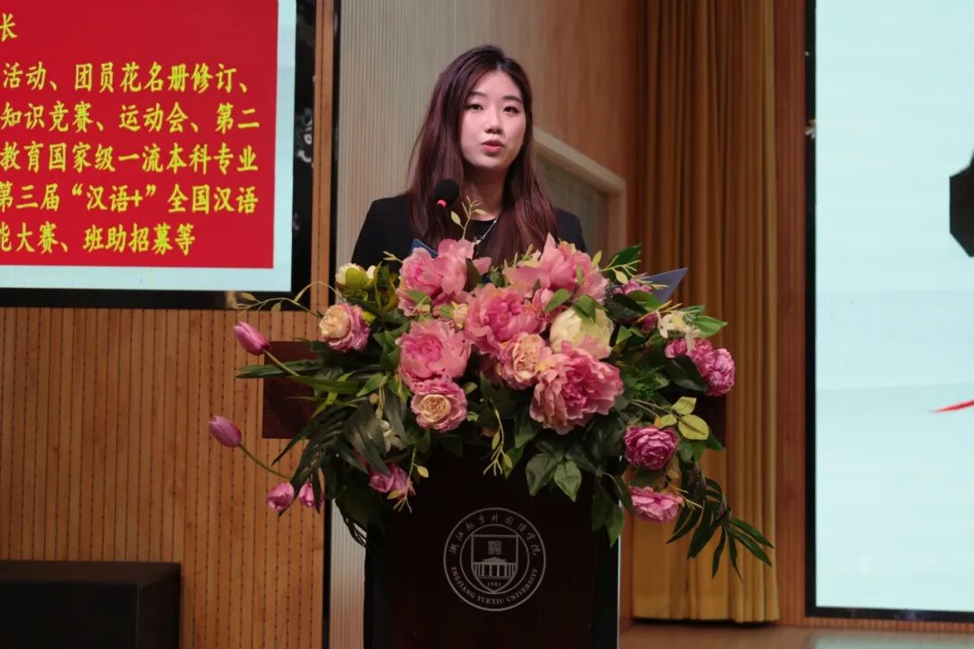 钱欣怡老师宣读《浙江越秀外国语学院中国语言文化学院四届一次团员、学生代表大会委员选举办法(草案)》。