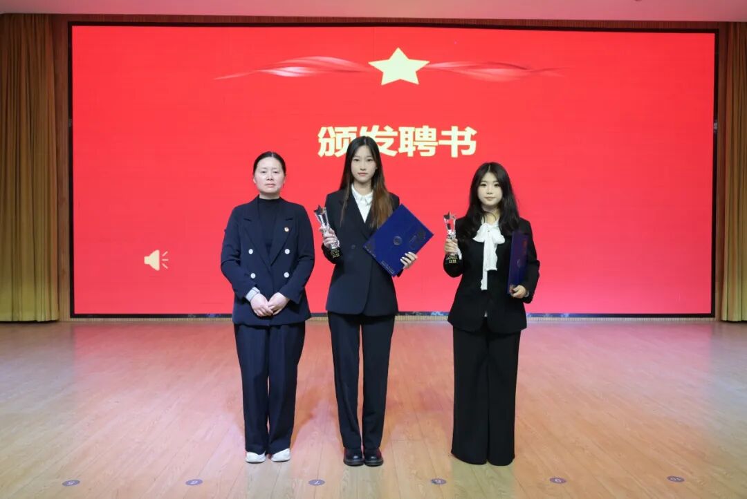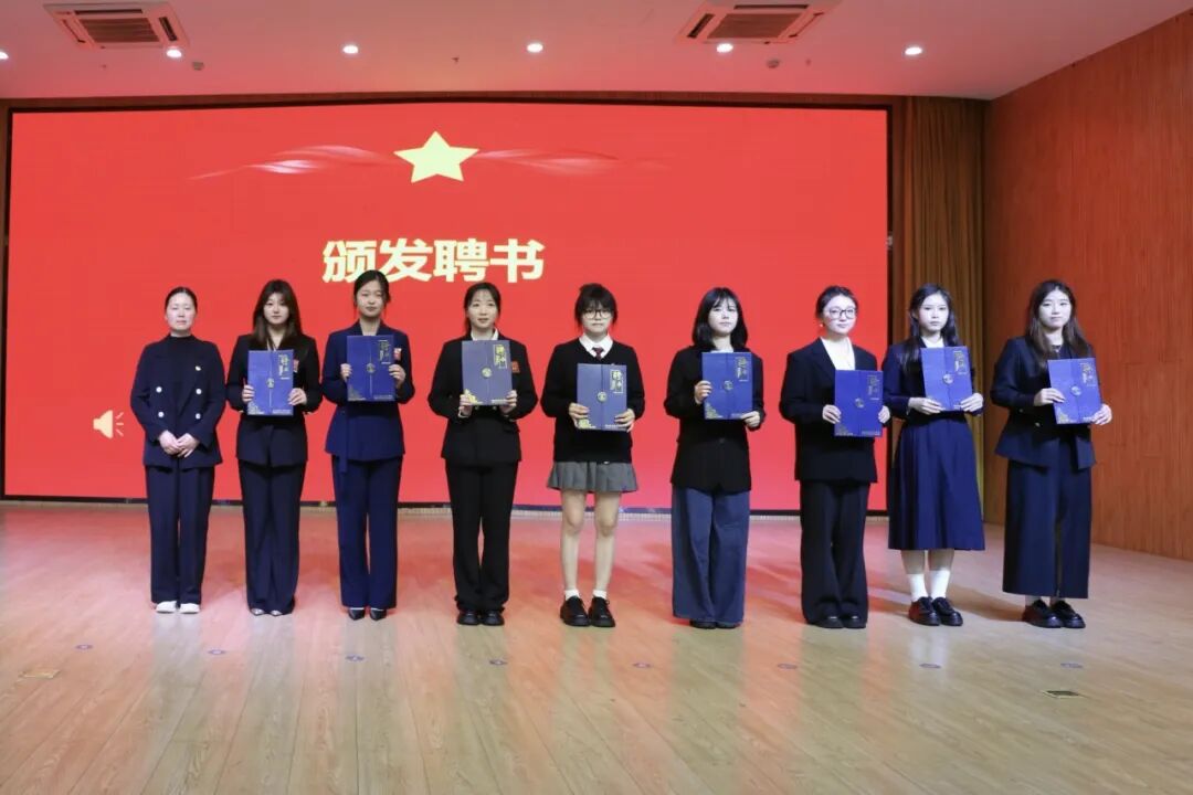 在统计选举票数的过程中,总监票人朱越男老师为三届三次团委学生会的主席团和部长颁发聘书,并与主席团成员和各部门部长合影留念。
