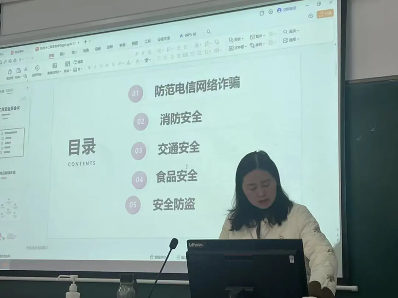 此外,朱老师还强调注意网络安全,不信谣、不传谣,不参与非法宗教活动等内容。班级安全工作至关重要,希望各位安全员一如既往,多关心周围同学的状态,同时督促本班同学按时保质完成每月平安e校的学习和考试。如遇到特殊情况,请及时拨打班主任、辅导员或安全保卫部电话(0575-89176099)。希望大家一起努力,共同创建一个更加和谐、安全的校园环境。