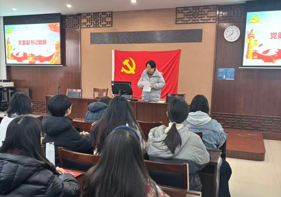 激昂的歌声过后,党委副书记曹笑玮致辞,代表学院党委向14名新党员同志们表示祝贺,也提出了几点期望与建议: