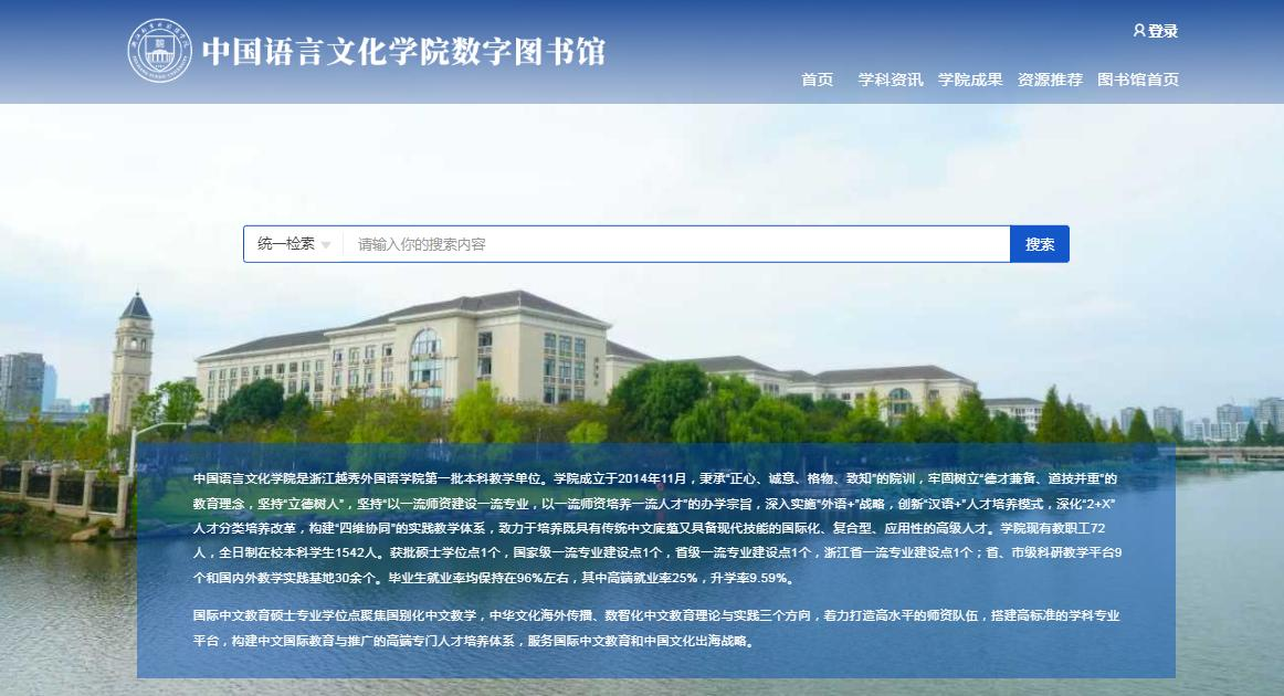 中国语言文化学院作为学校人文社科重点院系,专业文献需求突出。图书馆前期深入调研师生需求,定制个性化建设方案,数字图书馆以 “资源精准化、服务个性化、使用便捷化 ” 为核心,搭建 “一体多模块 ” 框架,设置五大功能板块,精准对接学科专业与学术研究需要。